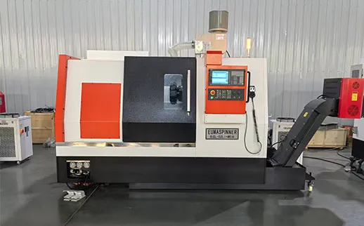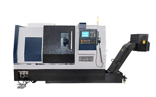 The turn mill lathe+MS series has a 30° inclined HT300 gray cast iron bed structure standard with linear guideway.EUMASPINNER precision electrical main and sub-spindle standard with water cooling device,nose runout below 0.001m, taper from A2-5 to A2-8.Range of working diameter from 320mm to 480mm,working length from 400mm to 850mm.Fast change live tool turret could be BMT or VDI type to handle the cutting and milling.C0/C1 ball screw for ultra high accuracy production and machine body constant temperature to be customized.