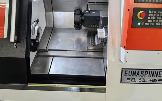 EUMASPINNER's EL line of Turn mill lathe the bed is made of one-piece HT300 gray cast iron, are integrallycast, hardened, and ground. They possess a wide rail span, low center of gravity, large bed swing, and high stiffness while delivering excellent drainage and chip removal performance. The base bed's interior has a heavily distributed strengthening ribs design, effectively eliminating deformation caused by shear and tensile stress.